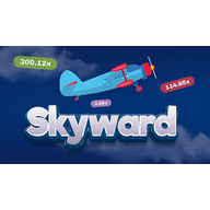 Skyward uses a sky and flight theme — an animated plane climbs against a dark backdrop as the multiplier rises. The design is clean and modern: a live multiplier counter dominates the screen, a graph traces the flight path, and past round results scroll along the bottom bar.
